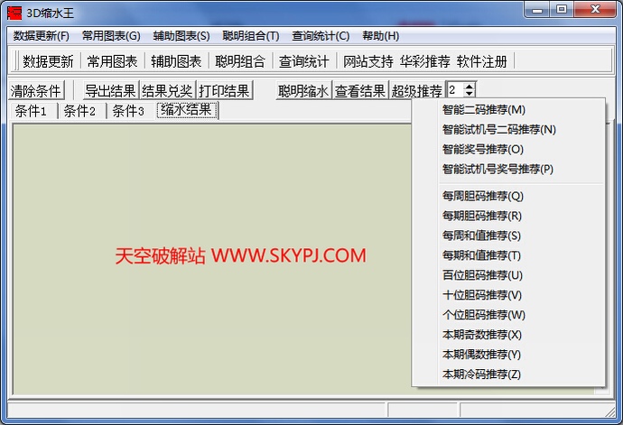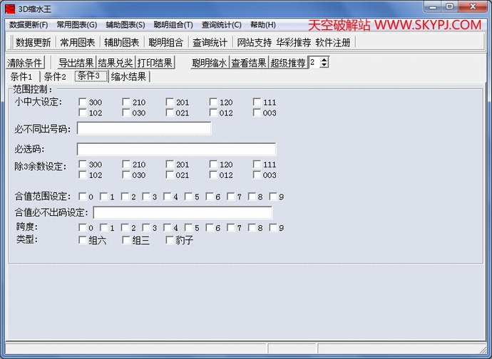 (03)、单击“超强缩水”,进入条件筛选号码,用户输入筛选条件,通过这个运算,大大减少选号数目。