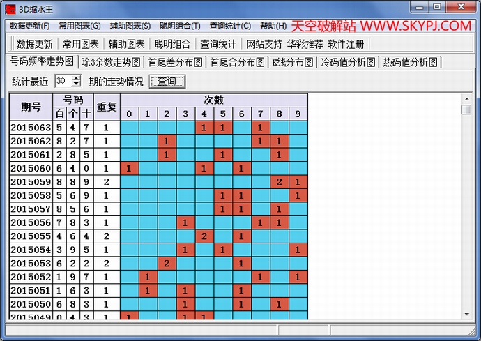 3D缩水王针对福彩3D提供全面超前的做码功能,筛码过滤模块,筛选条件齐全,界面简洁明了,快速计算出正确的号码,更令人叫绝的是聪明组合和超级推荐,自动推荐出包围中奖号的号码,软件配备迄今为止国内最齐全的分析图表,帮助用户对最近的开奖号码进行深入细致的分析,软件界面直观,易学易用,是喜欢3D彩票的彩民的良师益友。