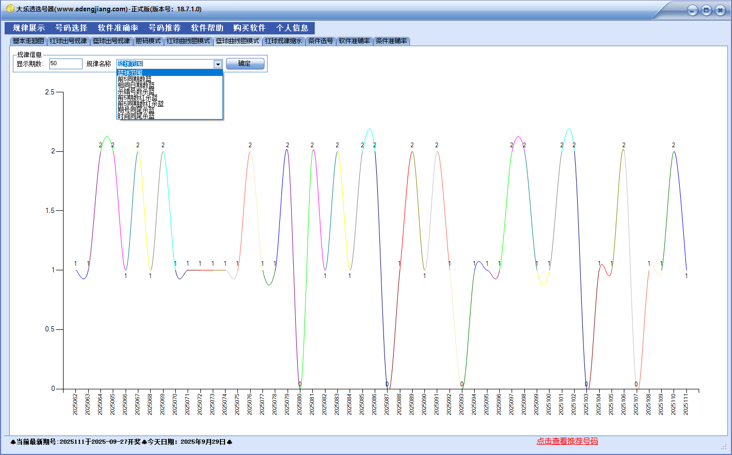 第六、蓝球曲线图模式。该图将蓝球的大多数出号规律以图形的方式展示给用户。