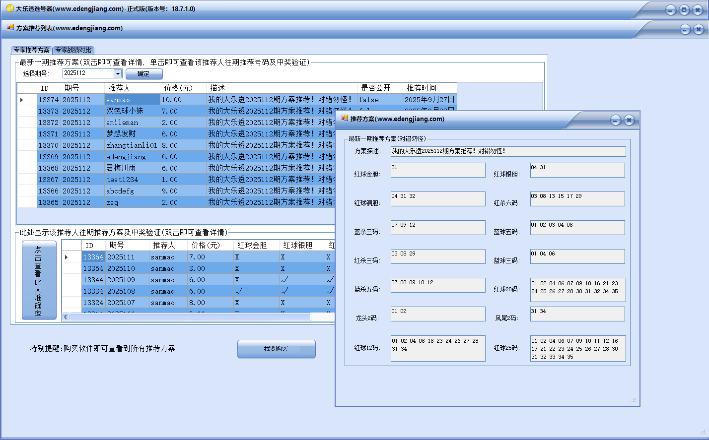 大乐透选号器软件综合目前网络上最热门的彩票分析方法,运用各种数学方法对彩票的历史开奖号码进行复杂的整理、统计、运算,得到更具分析性的数据(目前提供20余种红球规律和10余种蓝球规律),通过对近20种的过滤方法,最高比例的对投注组合进行优化,最大限度的减少了彩民的投注数量,最大限度的提高了彩民的中奖概率,是长期分析 大乐透彩票的最佳利器。如能长期坚持使用,大奖早晚会砸中您的脑袋。