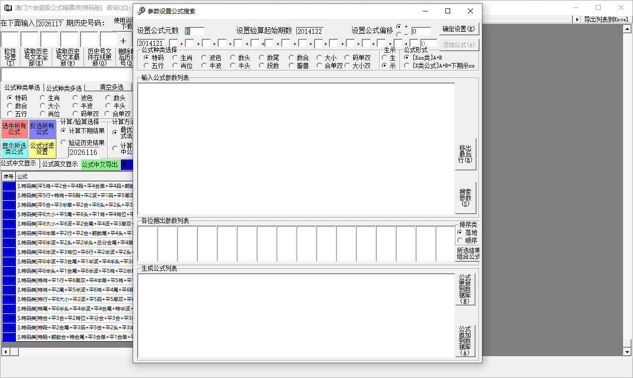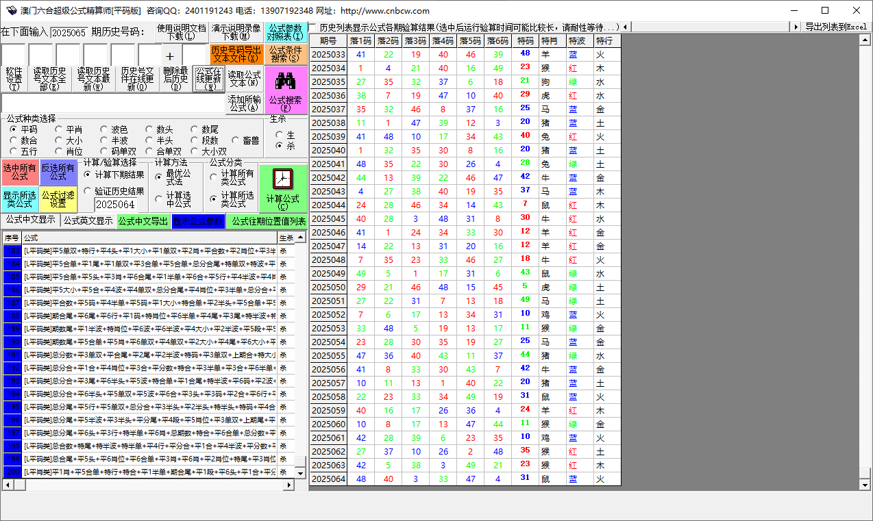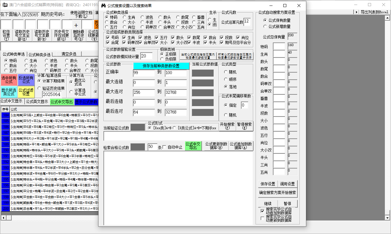 软件可以同时对上万条四则混合运算的公式进行运算,支持搜索和运算的公式加减因数高达128个(支持特长特大公式),就特码、生肖、头尾、段数、数合、数尾、大小、单双、半波、半头、五行等十多种参数进行分析和验证