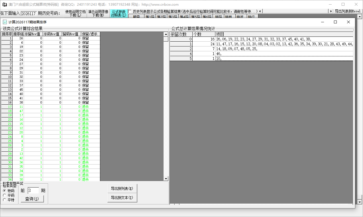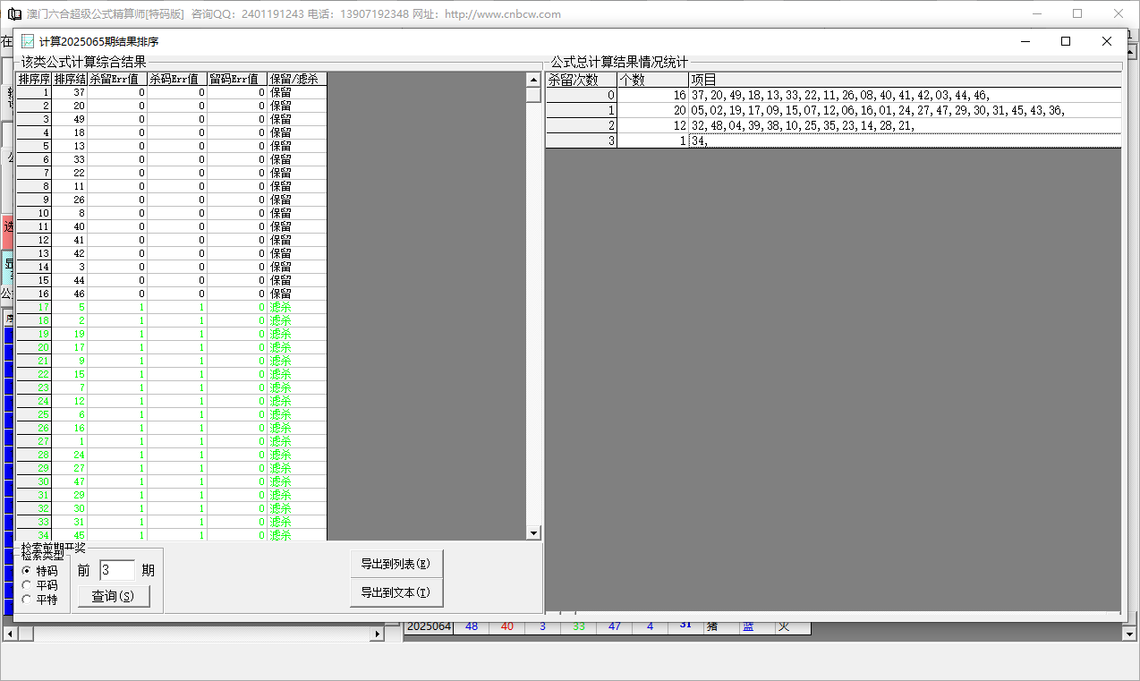 同时,并且可以提供根据参数来搜索或者过滤公式的功能,软件可以就下一期特码开奖情况,根据所选中的公式进行预测,将49个码分为留码和杀码,大大提高了公式的利用效率与使用效力,实为玩家不可多得的公式软件